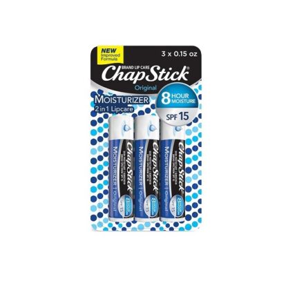 ChapStick Lip Moisturizer and Skin Protectant (Original Flavor, 1 Blister Pack of 3 Sticks) Lip Balm Tube, Sunscreen, SPF 12, 0.15 Ounce