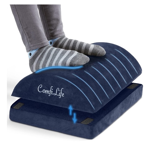 ComfiLife Foot Rest Under Desk for Office Use – Adjustable Height Memory Foam Foot Stool Under Desk for Office Chair & Gaming Chair – Ergonomic Under Desk Foot Rest for Back & Hip Pain Relief (Navy)